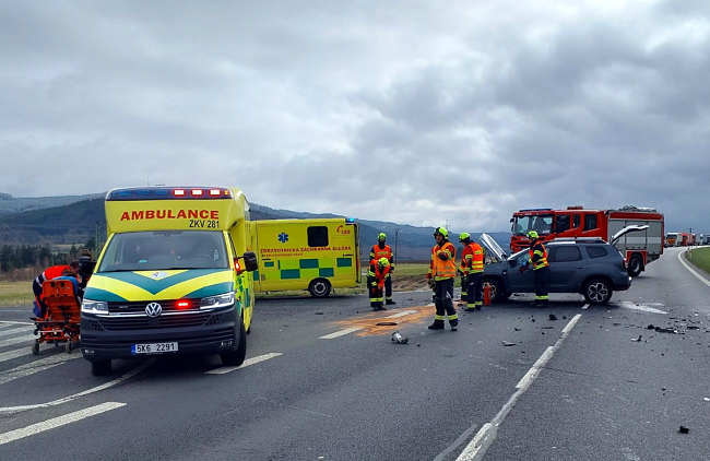 K čelnímu střetu dvou osobních aut u Dolního Žandova vyjížděly všechny složky IZS. K nehodě došlo ve čtvrtek 26. března dopoledne.