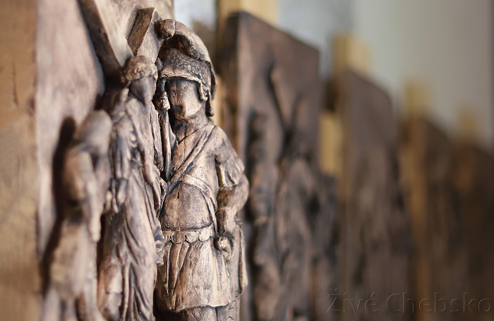 Der Kreuzweg wird durch andere einzigartige Objekte in der Kapelle ergänzt. „Die Besucher können mehrere großformatige Fotografien der ältesten gotischen Skulpturen in Cheb sehen, deren Originale in der Galerie der Schönen Künste in Cheb aufbewahrt werden. Außerdem gibt es einen Steinaltar aus der abgerissenen Kapelle der Himmelfahrt der Jungfrau Maria aus Hartoušov“, fügte der Kastellan hinzu.